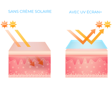 UV ÉCRAN+ : association de filtres UVA/UVB pour une protection optimale.